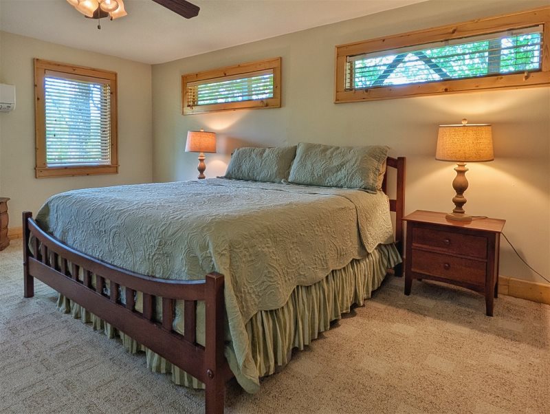 The cabin has everything needed for a relaxing vacation. We really liked the fact that theres a bedroom on each floor. Very well stocked kitchen and the covered porch was perfect! The view was one of the best weve had. Stunning sunset!