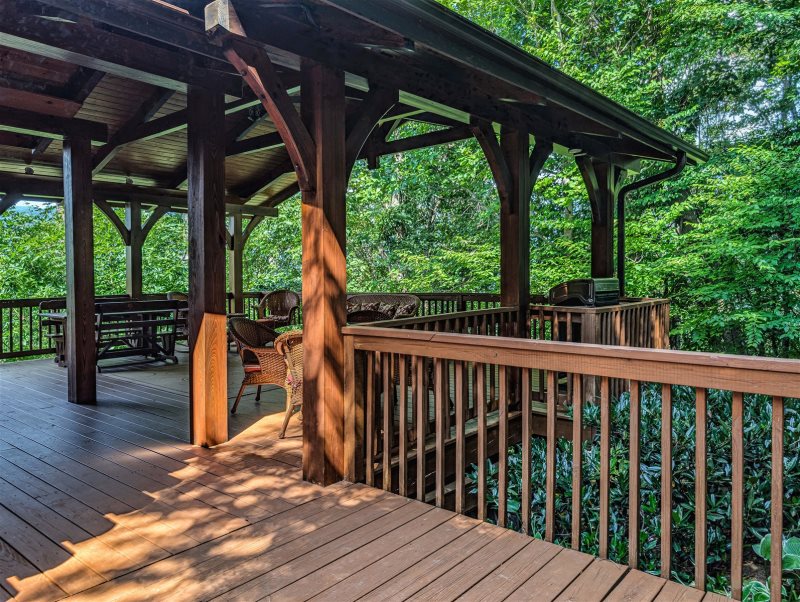 Favorite Feature?: The amazing covered porch with plenty of seating and a wonderful table for eating meals and playing games! We visited for vacation and time with family, shopping, walking around, exploring Waynesville and Maggie Valley, eating out at restaurants, our favorite activities outside Carolina Hideaway.